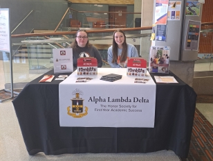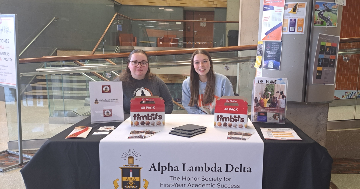 Pictured top: Morrigan Waller, former ALD president (left), and Miranda Shepard, current president, represent the society at a tabling event in the Campbell Student Union.