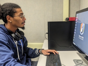 Pictured: Armani Diaz, a senior in the media production program.