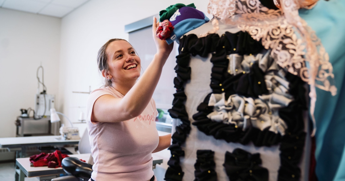 Buffalo State fashion and textile technology and graphic design students took part in Design-a-Thon 2025, hosted by Buffalo State and New Era Cap, which tasks participants with creating an avant-garde piece of art from New Era Cap sample products.